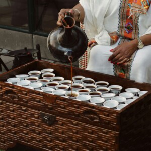 - 上の写真はエチオピア独自の文化「コーヒーセレモニー」